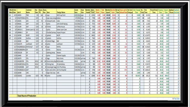 Embroidery Production Tracking Scheduler: